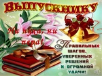Вы стоите на пороге взрослой жизни, еще шаг и вы попрощаетесь с детством. Какой будет ваша жизнь дальше, во многом зависит от решений, которые вы примете в ближайшее время. Постарайтесь все обдумывать четко и взвешенно, не идите на поводу у чужих желаний и фантазий, верьте в себя, смело идите к своей цели, не бойтесь, пробуйте и не сдавайтесь! Верьте в светлое будущее, оно ждет вас за порогом школы!